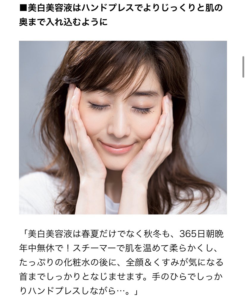 Olちゃん 美容オタク みな実ちゃんの美白肌ケア 基本のケアを確実 丁寧に 毎晩スチーマーで温めながらケア 美白美容液はハンドプレス 日中はトーンアップ下地でuvケア ボディーのuvケアは保湿重視 水分補給 飲む美白ケアで内側から